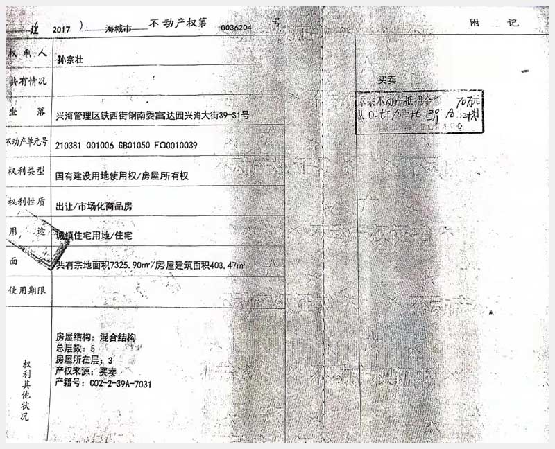 地址:海城市興海管理區(qū)興海大街39-S1號房產(chǎn) 標(biāo)的號:152