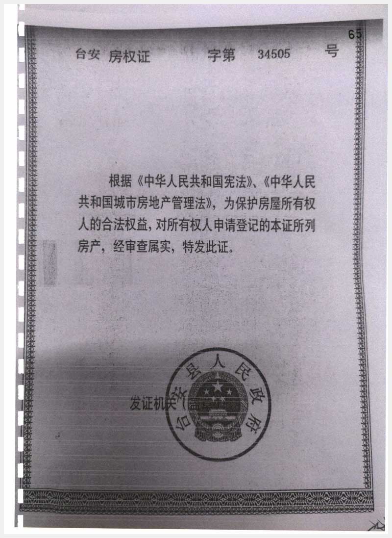 135號 臺安縣臺盤路南城郊鄉(xiāng)黑漁村委會西房產(chǎn)