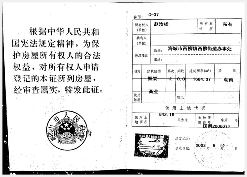 197號(hào) 海城市西柳鎮(zhèn)西柳辦事處房產(chǎn)