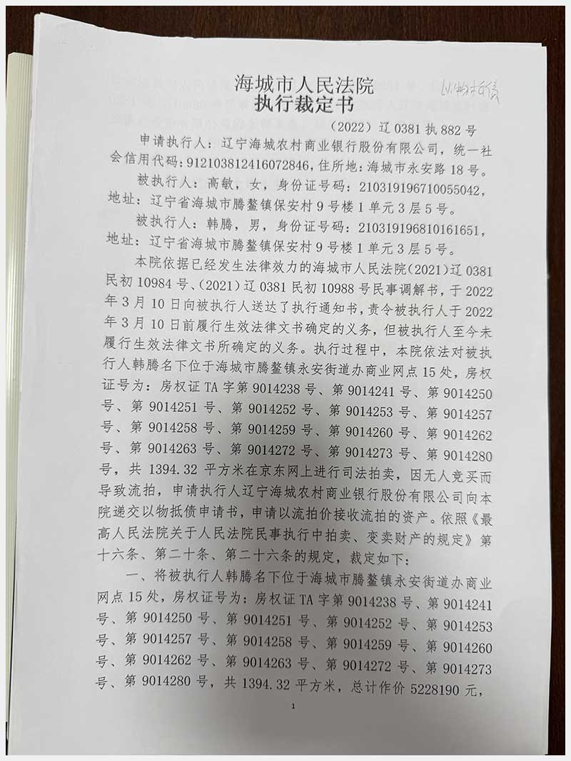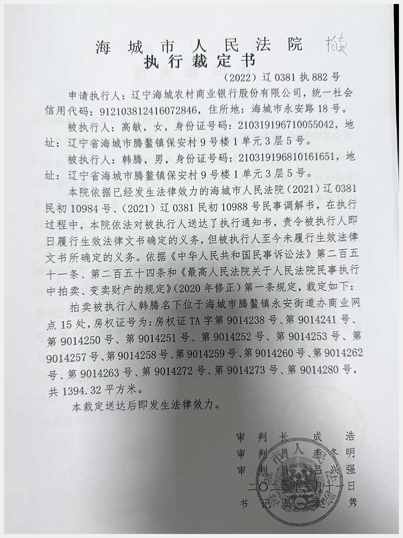 地址:海城市騰鰲鎮(zhèn)永安街道辦永安路 標(biāo)的號:214