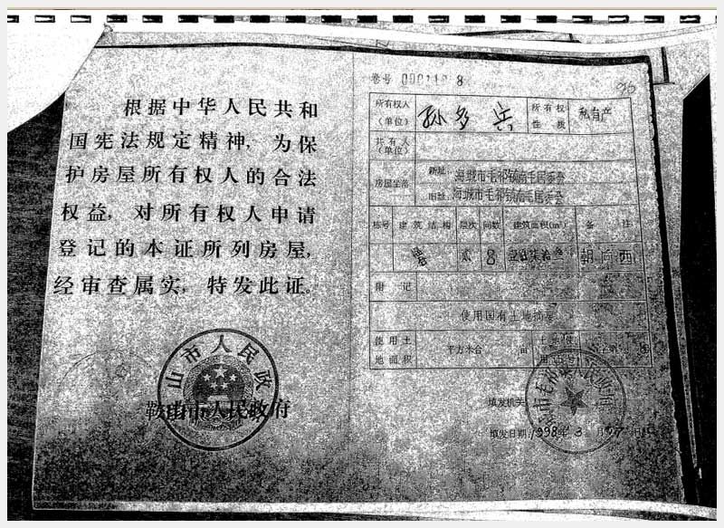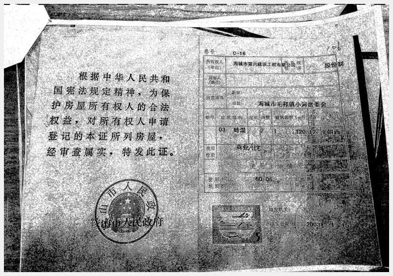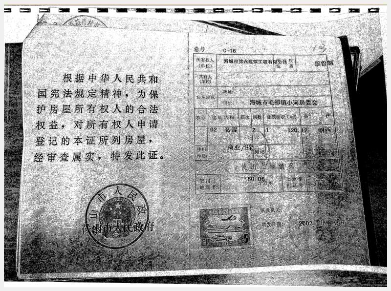 地址:海城市毛祁鎮(zhèn)小河居委會(huì) 標(biāo)的號(hào):216-2