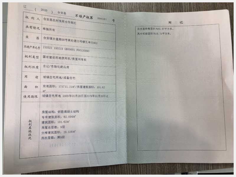 地址:臺(tái)安鎮(zhèn)臺(tái)盤路38號(hào)美倫堡 標(biāo)的號(hào):141