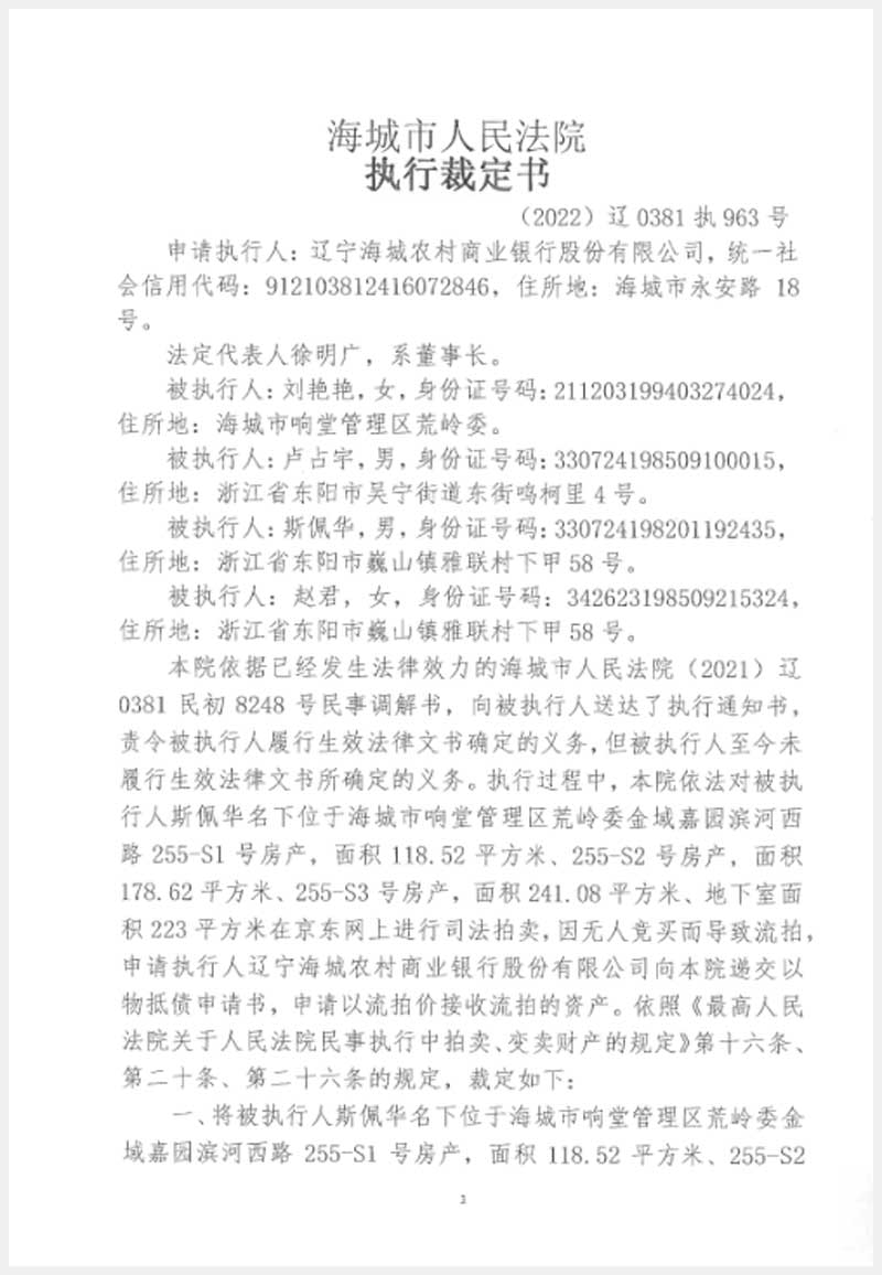 235號 海城市響堂管理區(qū)荒嶺委金域嘉園濱河西路255-S1、S2、S3號房產(chǎn)