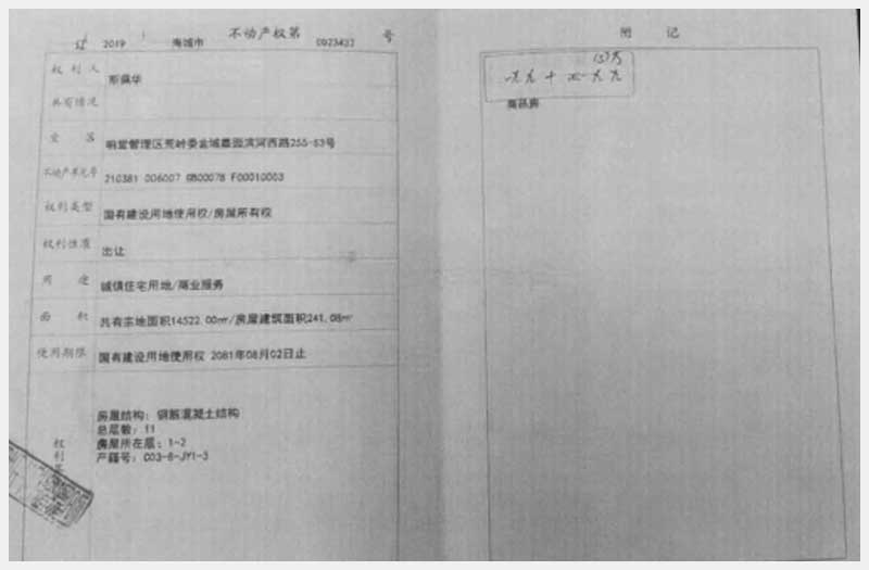 名稱:海城市響堂管理區(qū)荒嶺委金域嘉園濱河西路255-S1、S2、S3號房產(chǎn) 面積:有證:538.22㎡;無證:223㎡ 瀏覽次數(shù):991