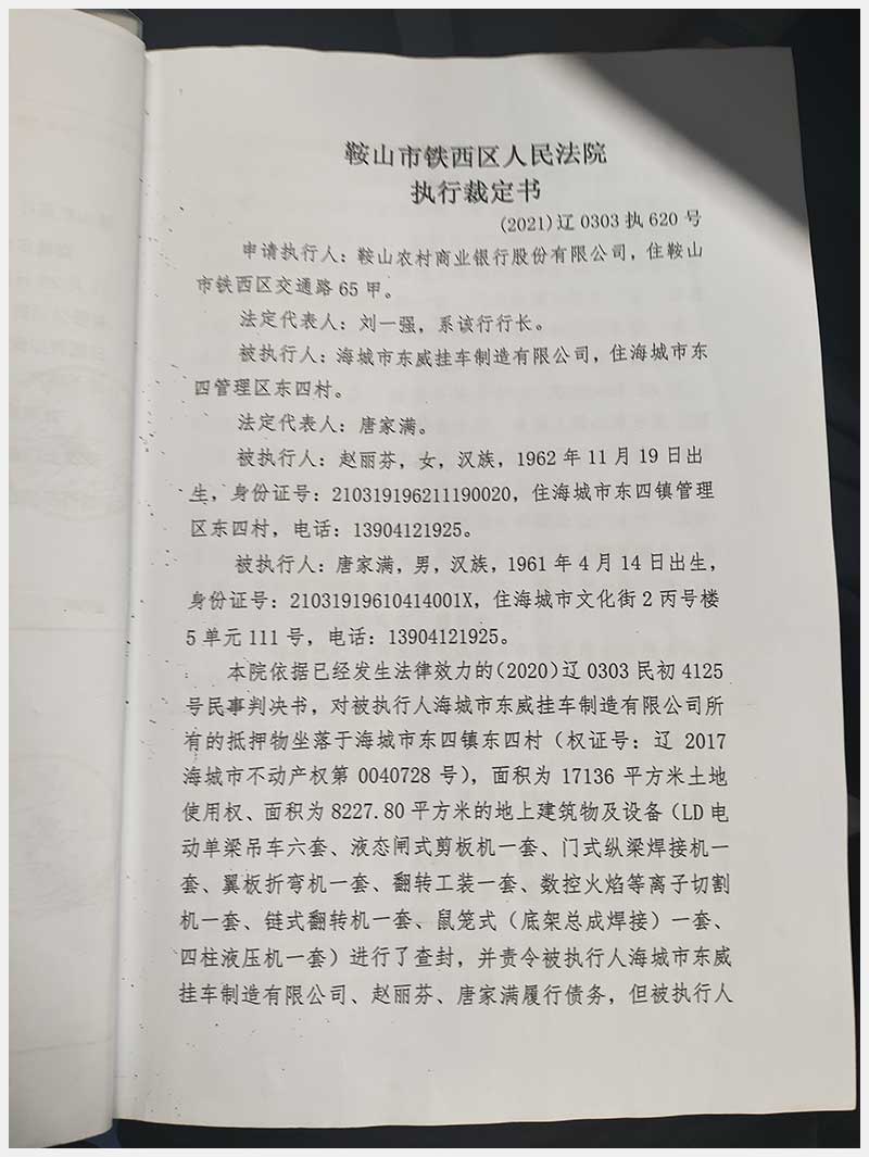 110號(hào) 海城市東四鎮(zhèn)東四村房產(chǎn)、土地使用權(quán)及設(shè)備