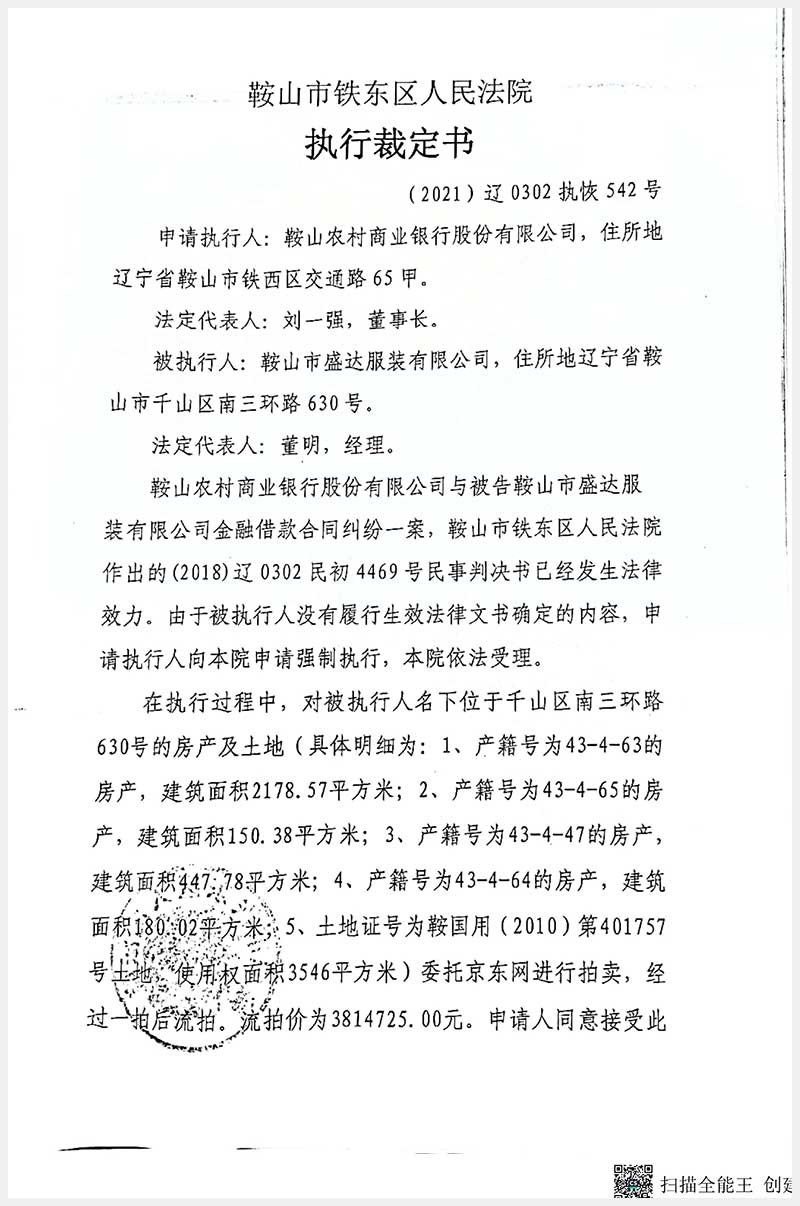 115號 鞍山市千山區(qū)南三環(huán)路630號房產(chǎn)及土地使用權(quán)