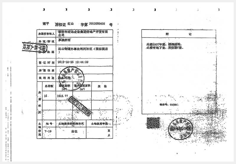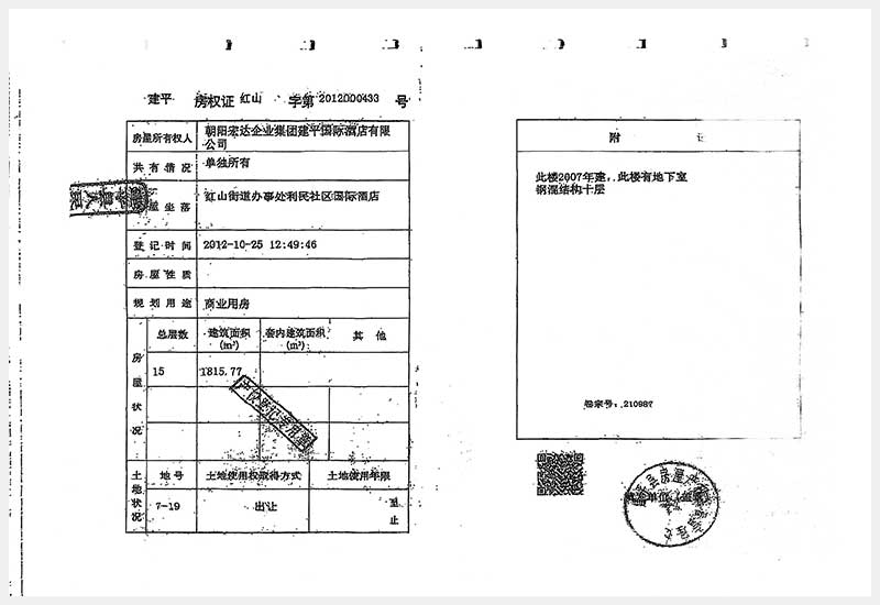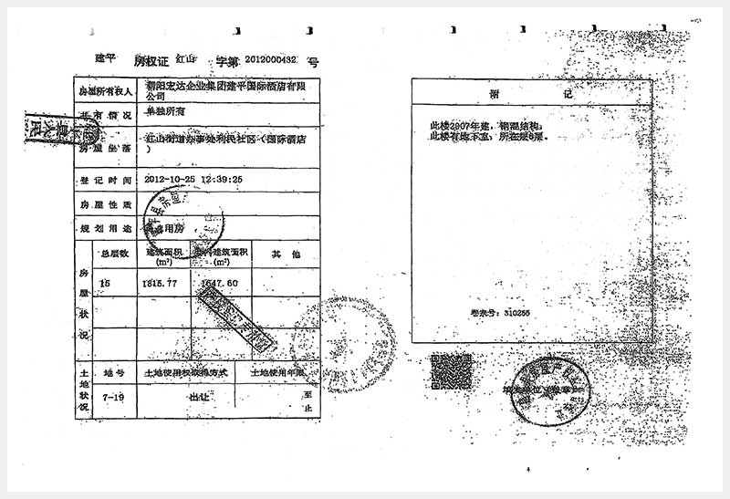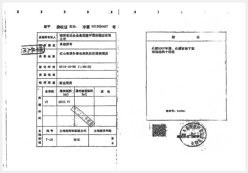 274號(hào) 朝陽(yáng)市建平縣紅山街道辦事處利民社區(qū)國(guó)際酒店房產(chǎn)及土地使用權(quán)