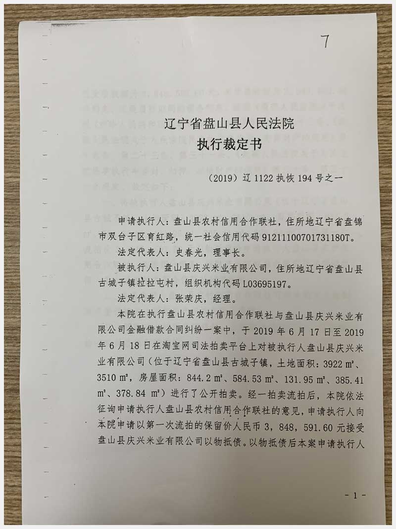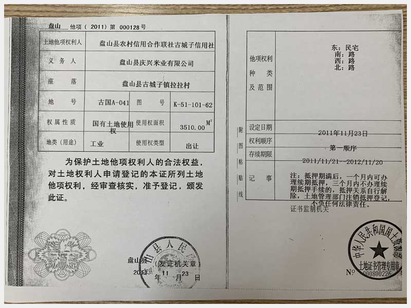 32號(hào) 盤錦盤山縣古城子鎮(zhèn)拉拉村土地使用權(quán)(慶興米業(yè))