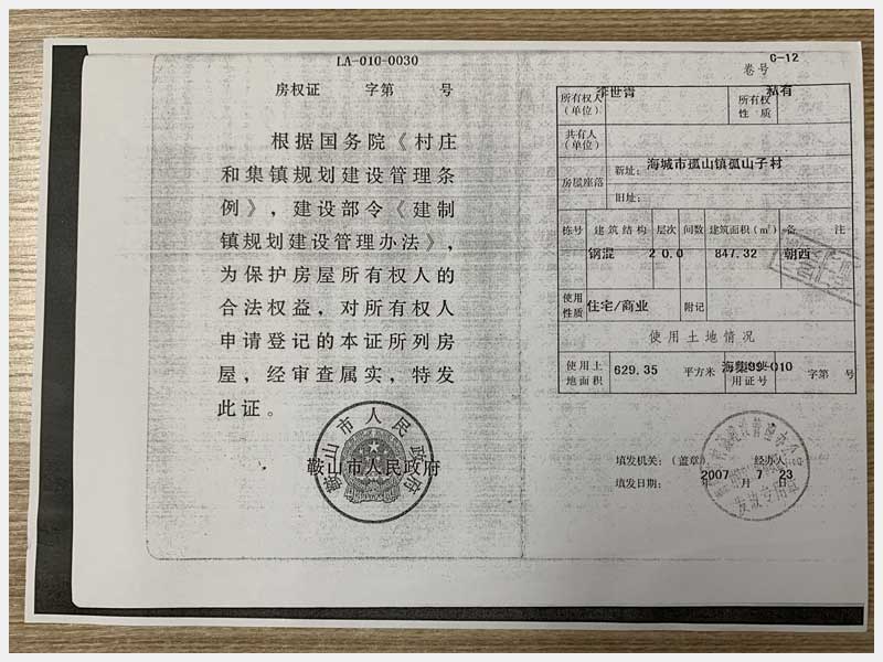 地址:海城市孤山鎮(zhèn)孤山村 標(biāo)的號(hào):2