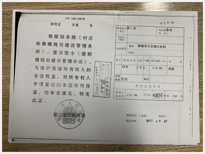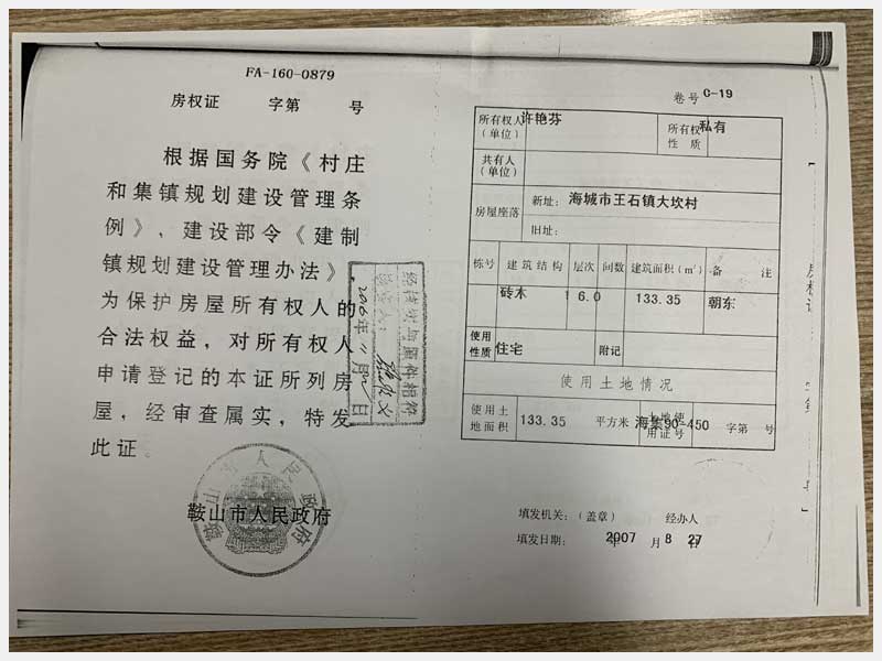 33號(hào) 海城市王石鎮(zhèn)大坎村房產(chǎn)
