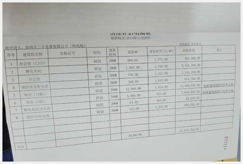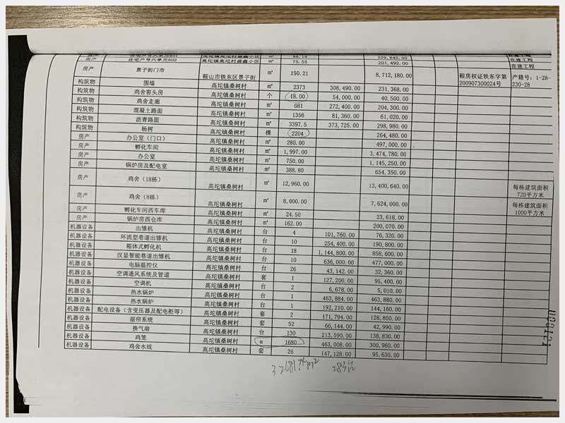 名稱:海城市高坨鎮(zhèn)桑樹村房產(chǎn)、構(gòu)筑物及其他輔助設施 面積:房產(chǎn):3602.3㎡、雞舍:20960㎡ 瀏覽次數(shù):1625