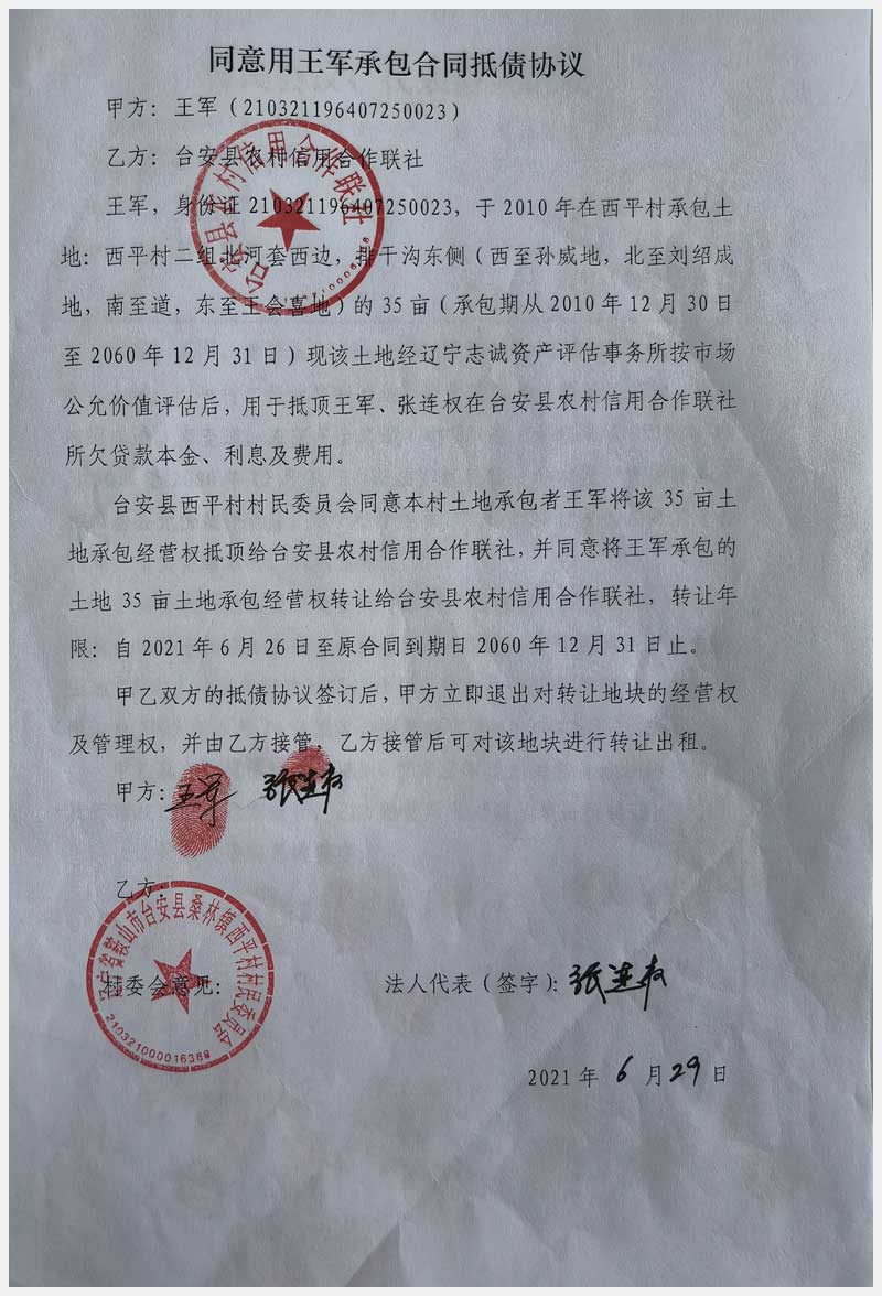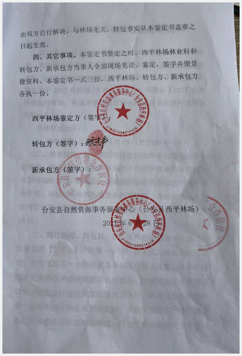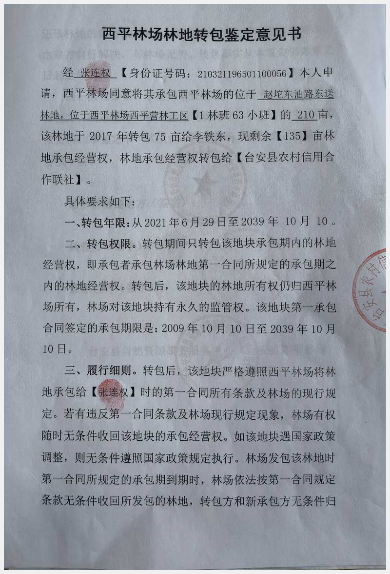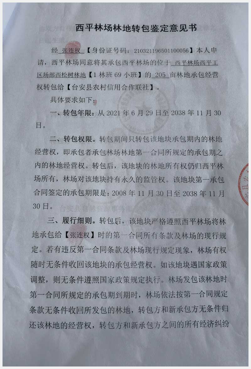 124號(hào) 臺(tái)安縣西平林場(chǎng)林地承包經(jīng)營(yíng)權(quán)及西平村土地承包經(jīng)營(yíng)權(quán)