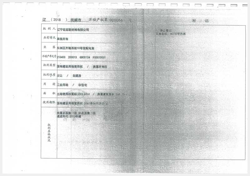 名稱:撫順市東洲區(qū)齊隆西街19號房產(chǎn)及土地使用權(quán) 面積:房產(chǎn):13454.25㎡、土地:48237㎡ 瀏覽次數(shù):1164