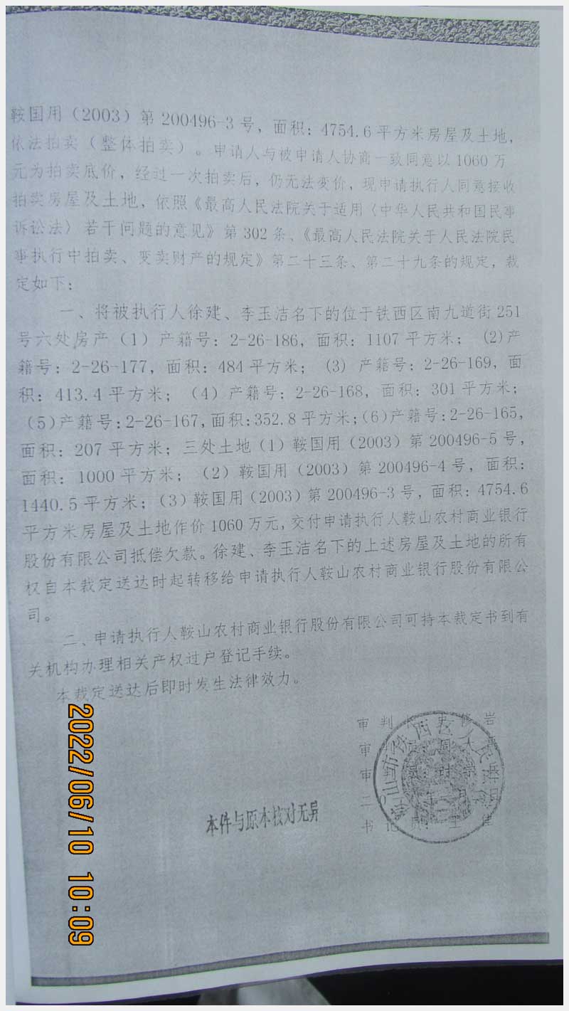 名稱:鞍山市鐵西區(qū)南九道街251號(hào)房產(chǎn)及土地使用權(quán) 面積:房產(chǎn):2865.2㎡、土地:7195.1㎡ 瀏覽次數(shù):1060