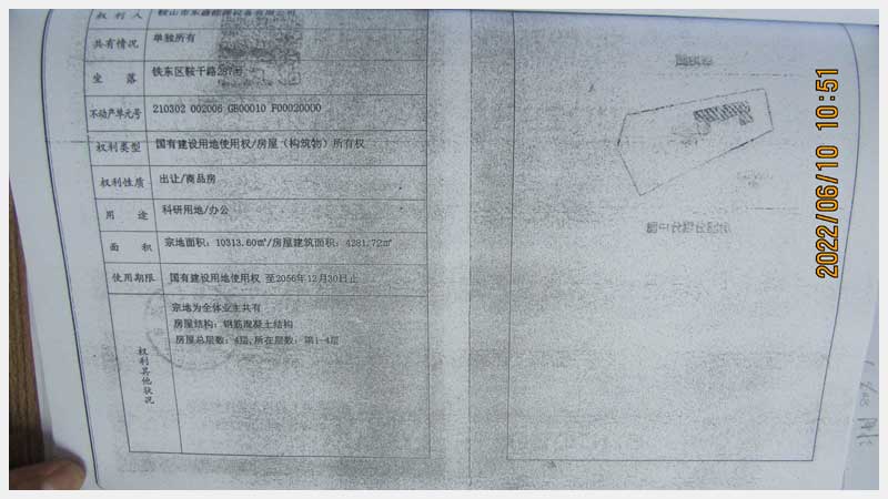 名稱:鞍山市鐵東區(qū)鞍千路287號(hào)房產(chǎn)及土地使用權(quán) 面積:房產(chǎn):6982.35㎡;土地:10313.6㎡ 瀏覽次數(shù):1385