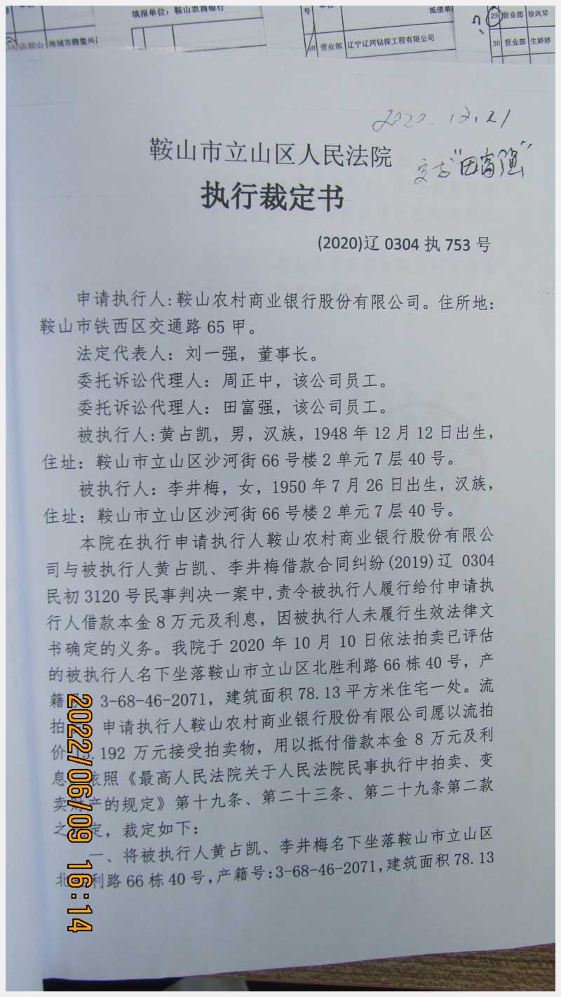 地址:鞍山市立山區(qū)北勝利路66棟40號 標的號:86