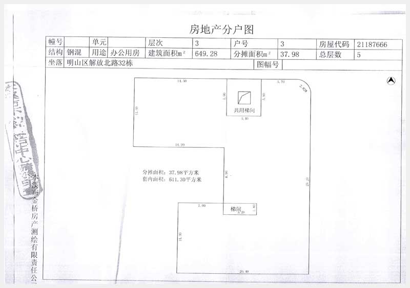 名稱:本溪市明山區(qū)解放北路32東3層房產(chǎn) 面積:649.28 ㎡ 瀏覽次數(shù):1071