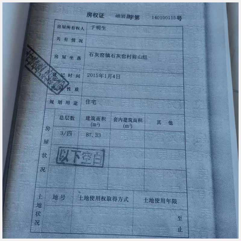 名稱:岫巖滿族自治縣石灰窯鎮(zhèn)石灰窯村前山組房產 面積:87.33㎡ 瀏覽次數:789