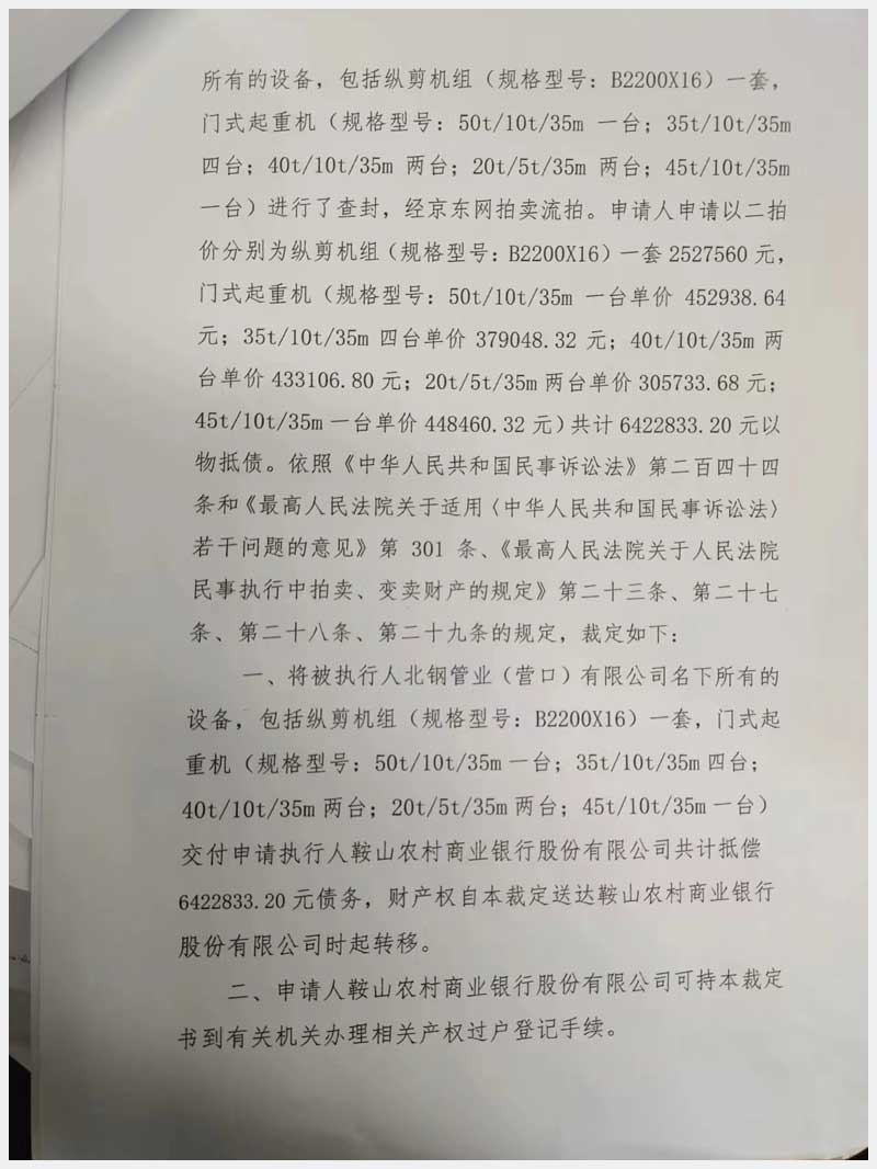 101號(hào) 北鋼管業(yè)(營(yíng)口)有限公司所屬的機(jī)器設(shè)備