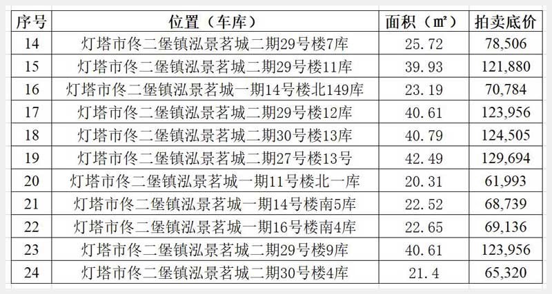 21號(hào) 遼陽(yáng)市佟二堡鎮(zhèn)佟二堡村泓景茗城小區(qū)一期車(chē)庫(kù)