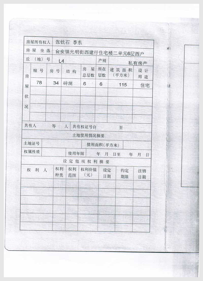 28-2號 臺安鎮(zhèn)光明街西建行住宅樓二單元6層西戶