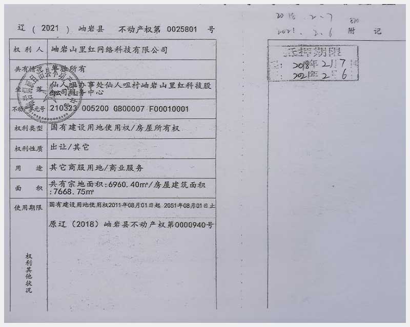 名稱:岫巖滿族自治縣仙人咀辦事處仙人咀村房產(chǎn)及土地使用權(quán) 面積:房產(chǎn):38118.66㎡;土地:77446.8㎡ 瀏覽次數(shù):183