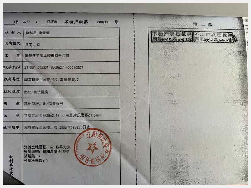 名稱:燈塔市法院住宅樓北樓法庭辦公樓,東9號、11號、12號門市 面積:1361.5㎡ 瀏覽次數(shù):137