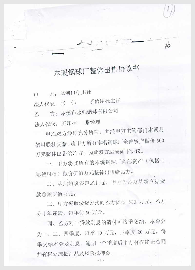 19號 本溪市永強(qiáng)鋼球有限公司的全部資產(chǎn)