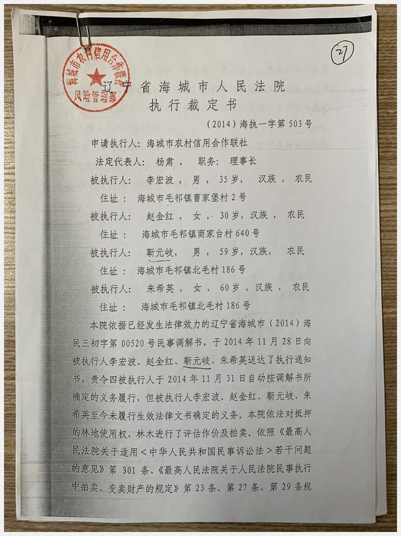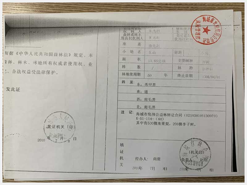 27號 海城市毛祁鎮(zhèn)南毛村的林權(quán)