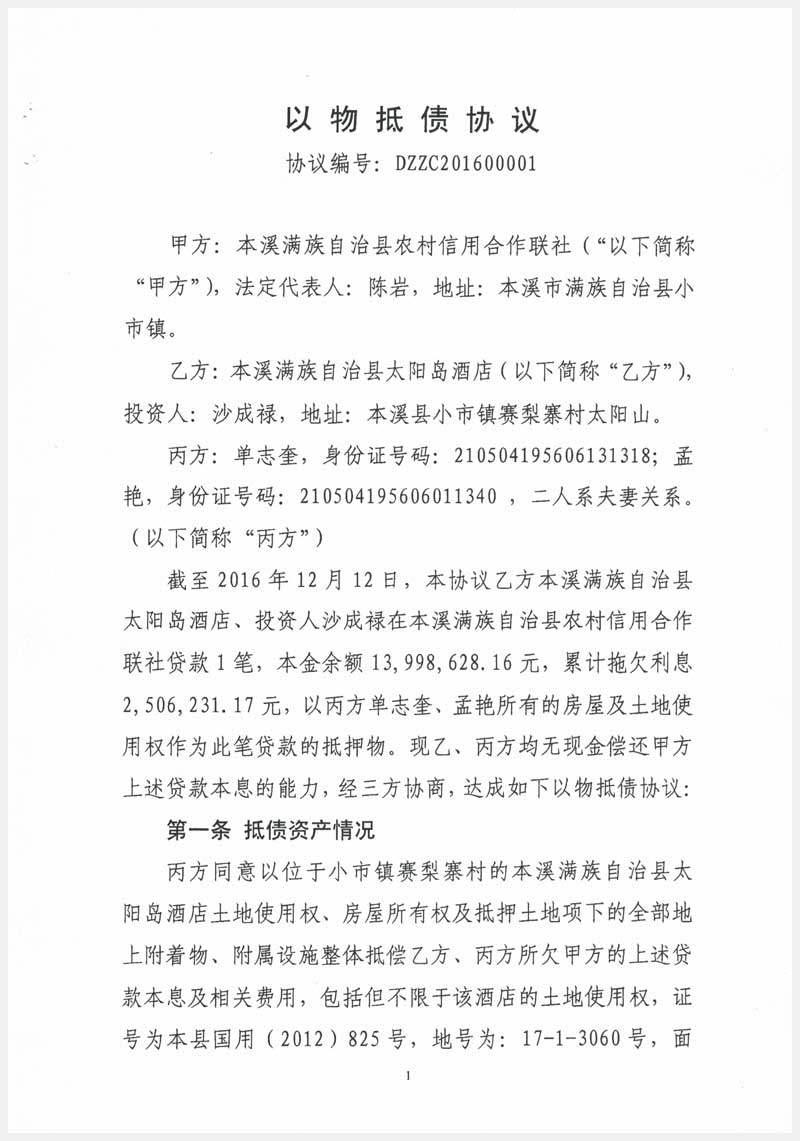 58號 本溪滿族自治縣太陽島酒店房產(chǎn)、土地及附屬設施