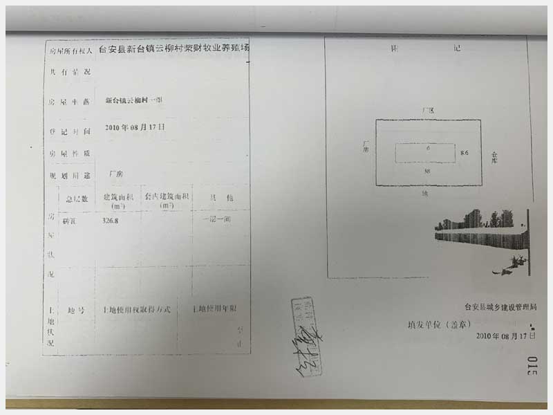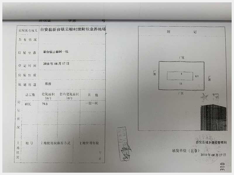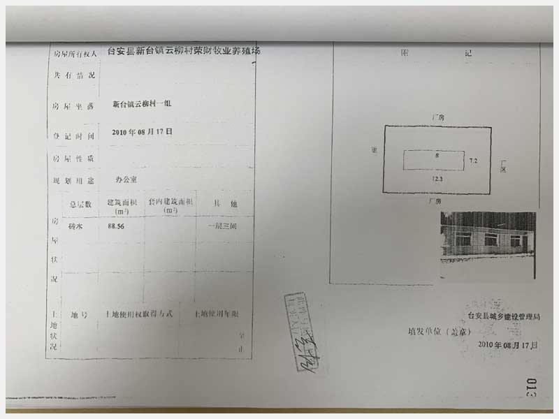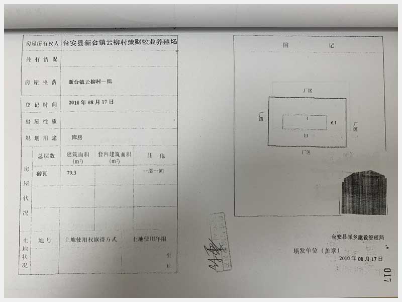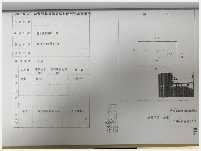 名稱:臺安縣新臺鎮(zhèn)云柳村1組房產(chǎn) 面積:房產(chǎn):2322.38㎡、土地:2500㎡ 瀏覽次數(shù):1399