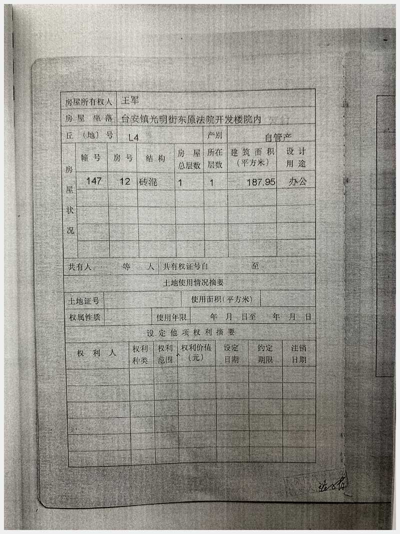 78-1號(hào) 臺(tái)安鎮(zhèn)光明街東原法院開(kāi)發(fā)樓院內(nèi)房產(chǎn)