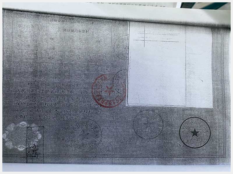 8號 撫順市清原滿族自治縣馬前寨土地使用權