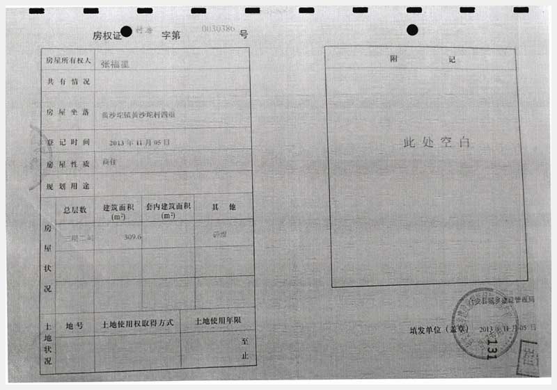 名稱:臺(tái)安縣黃沙坨鎮(zhèn)黃沙坨村四組房產(chǎn) 面積:309.6㎡ 瀏覽次數(shù):1234